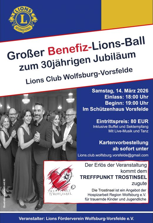 Für den Benefiz-Jubiläumsball im Schützenhaus Vorsfelde können ab sofort Eintrittskarten bestellt werden unter: